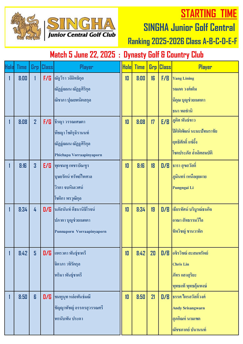 สนามที่ 5 การแข่งขันกอล์ฟ เยาวชนชมรมสิงห์ภาคกลาง