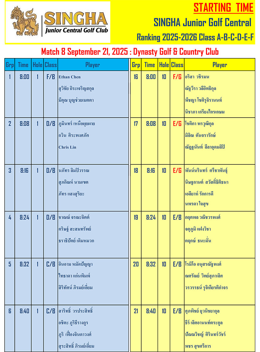 สนามที่ 7 การแข่งขันกอล์ฟ เยาวชนชมรมสิงห์ภาคกลาง
