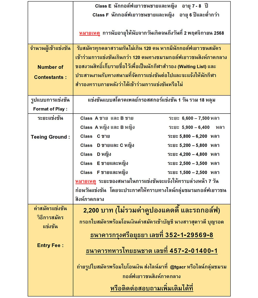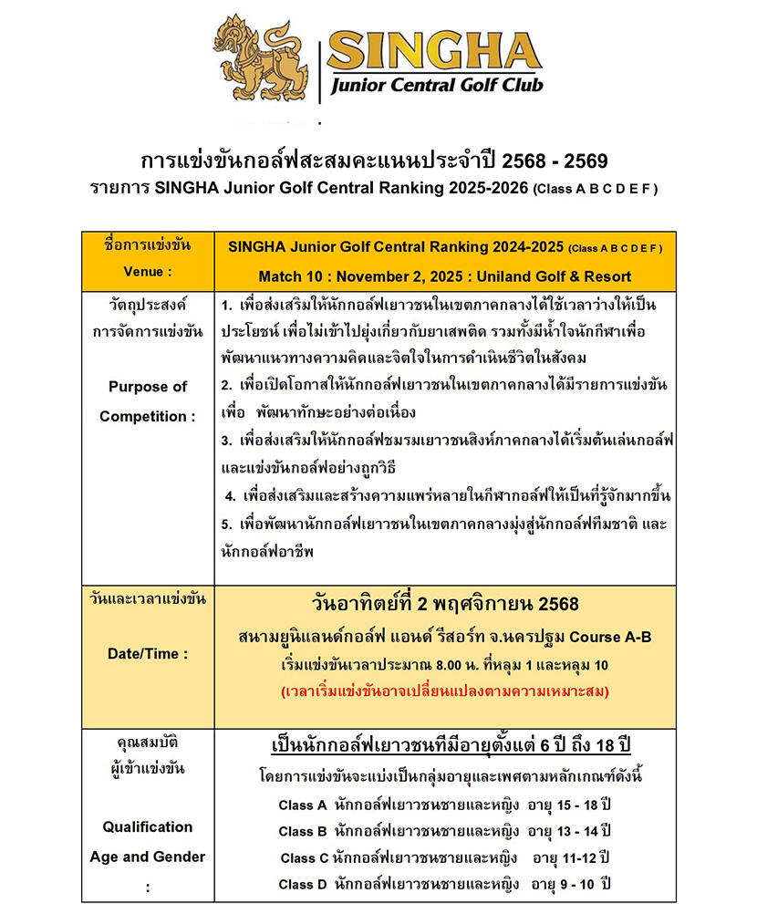 สนามที่ 10 การแข่งขันกอล์ฟ เยาวชนชมรมสิงห์ภาคกลาง