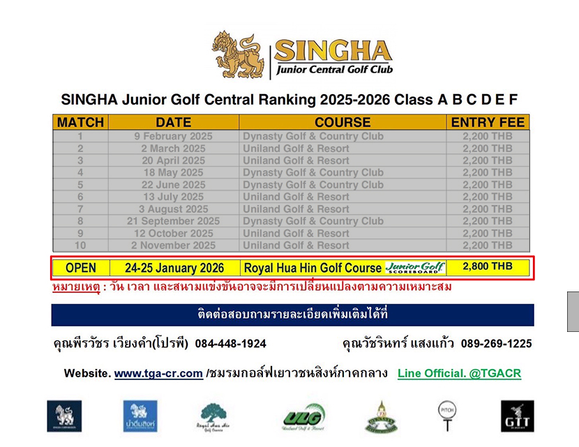 การแข่งขันกอล์ฟ เยาวชนชมรมสิงห์ภาคกลาง