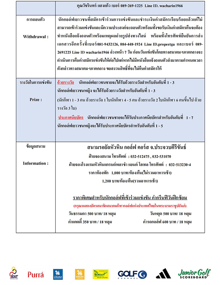 SINGHA KRUNGTHAI Junior Golf Ranking 2025-26