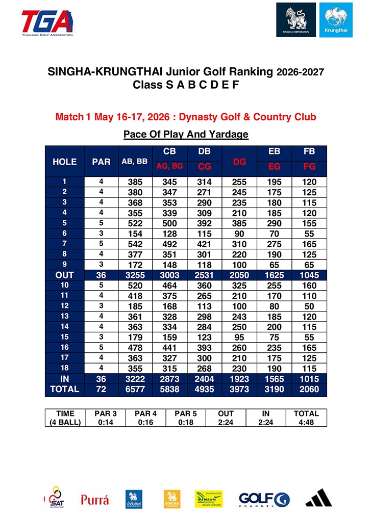 SINGHA KRUNGTHAI Junior Golf Ranking