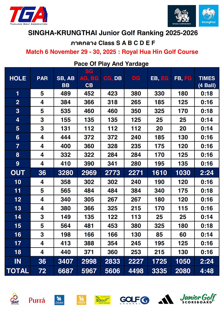 SINGHA KRUNGTHAI Junior Golf Ranking 2025-26