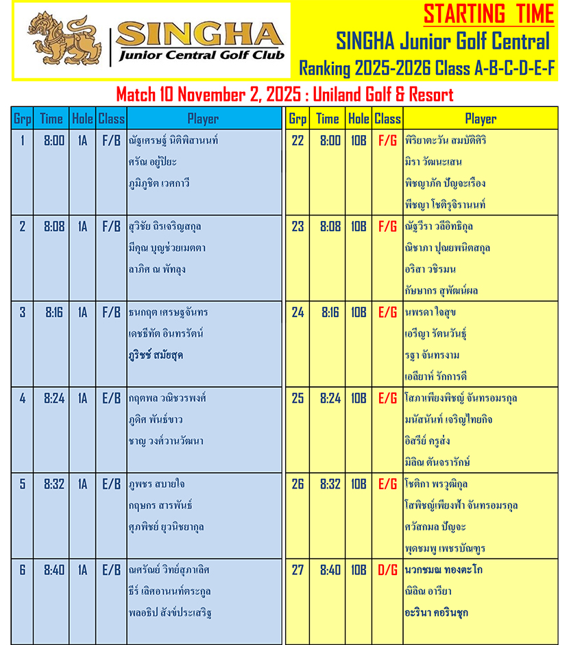 สนามที่ 10 การแข่งขันกอล์ฟ เยาวชนชมรมสิงห์ภาคกลาง