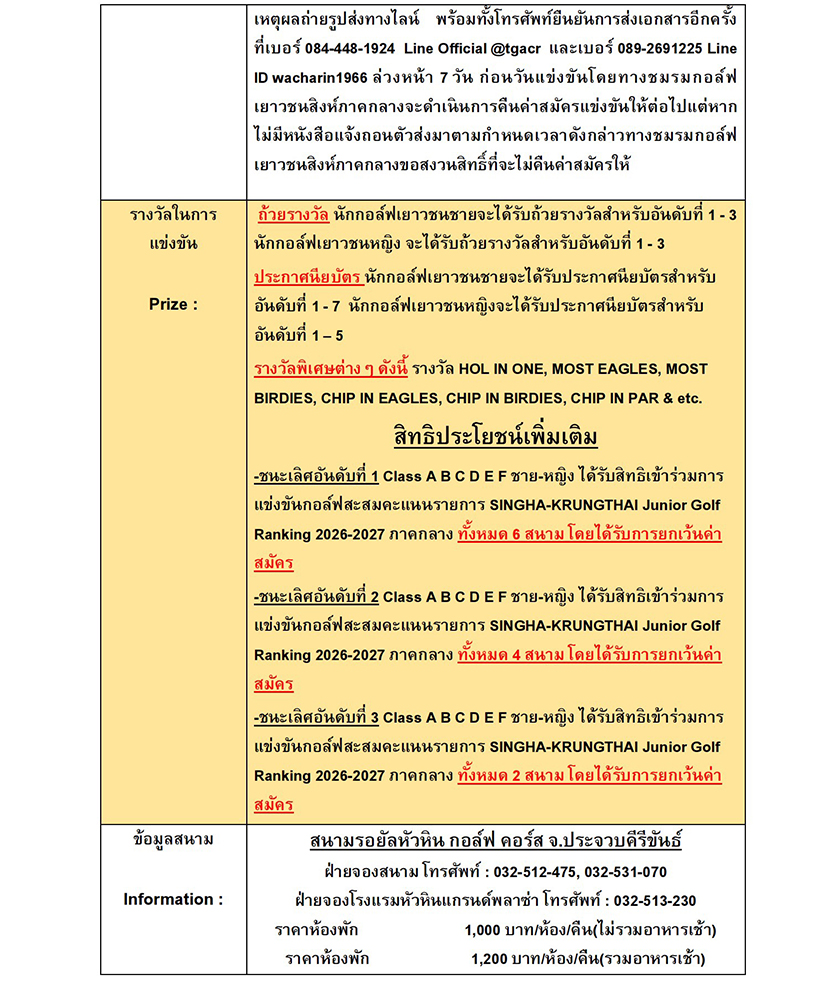การแข่งขันกอล์ฟ เยาวชนชมรมสิงห์ภาคกลาง Open Match
