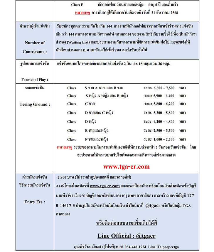 SINGHA KRUNGTHAI Junior Golf Ranking 2025-26