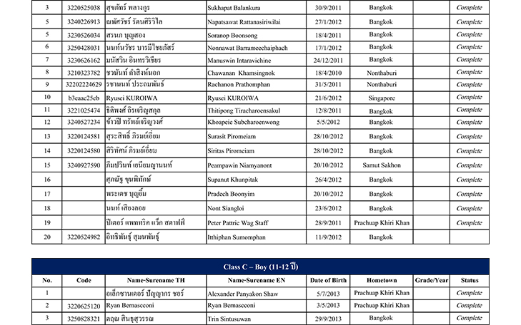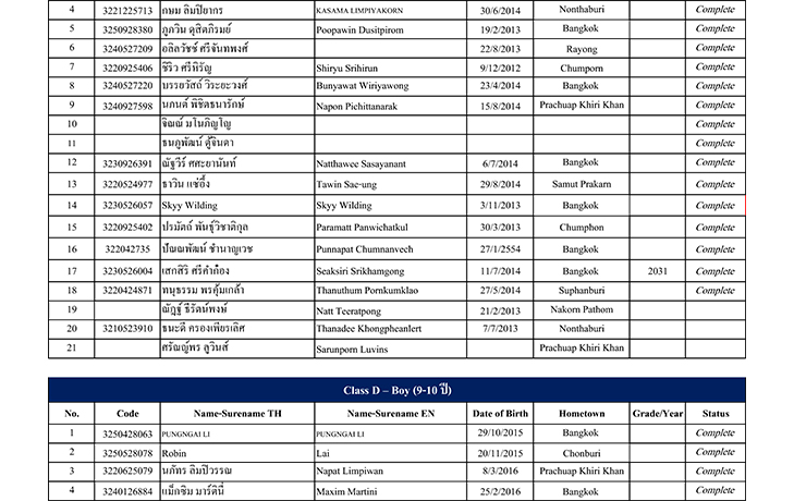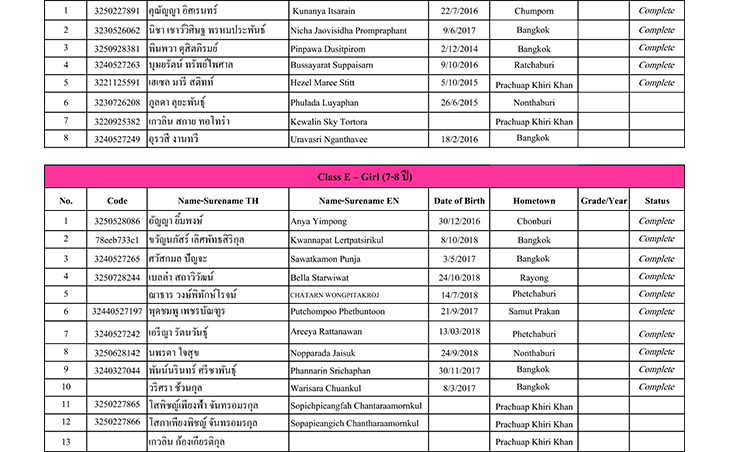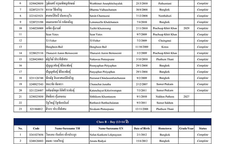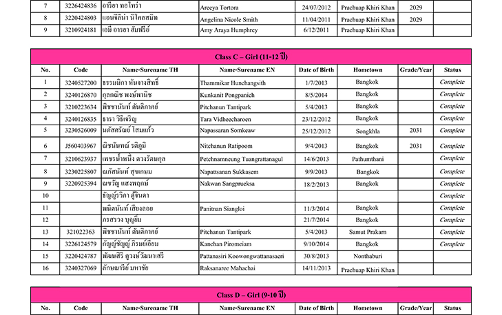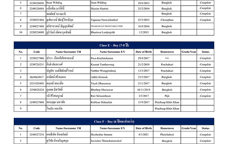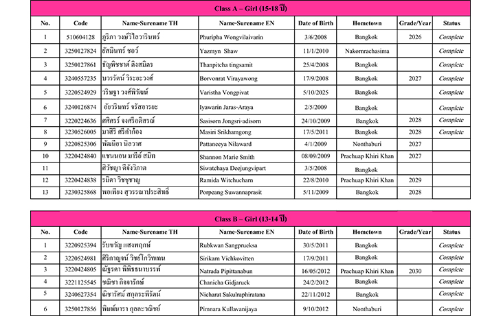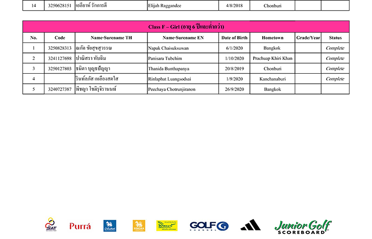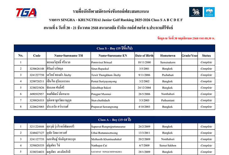 SINGHA KRUNGTHAI Junior Golf Ranking 2025-26 Match 6 Class S, A, B, C, D, E, F